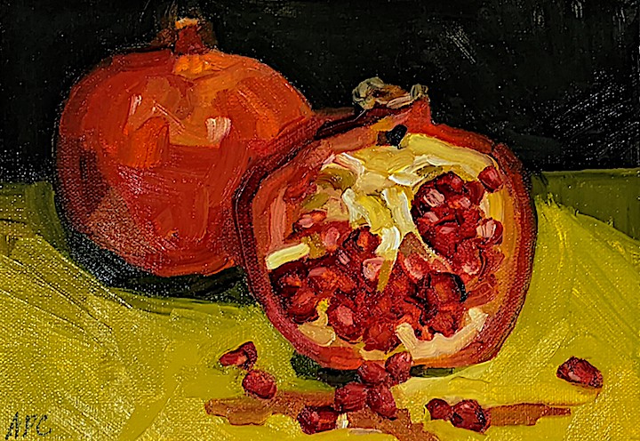 More deep red love your way. I had more fun with those bleeding seeds--not to mention the fun of the dumping them in lots of salads throughout the holidays. (Side benefit of still-life painting.) I promise some IG giveaways are coming soon, so don't forget to follow me there @apclaggett.